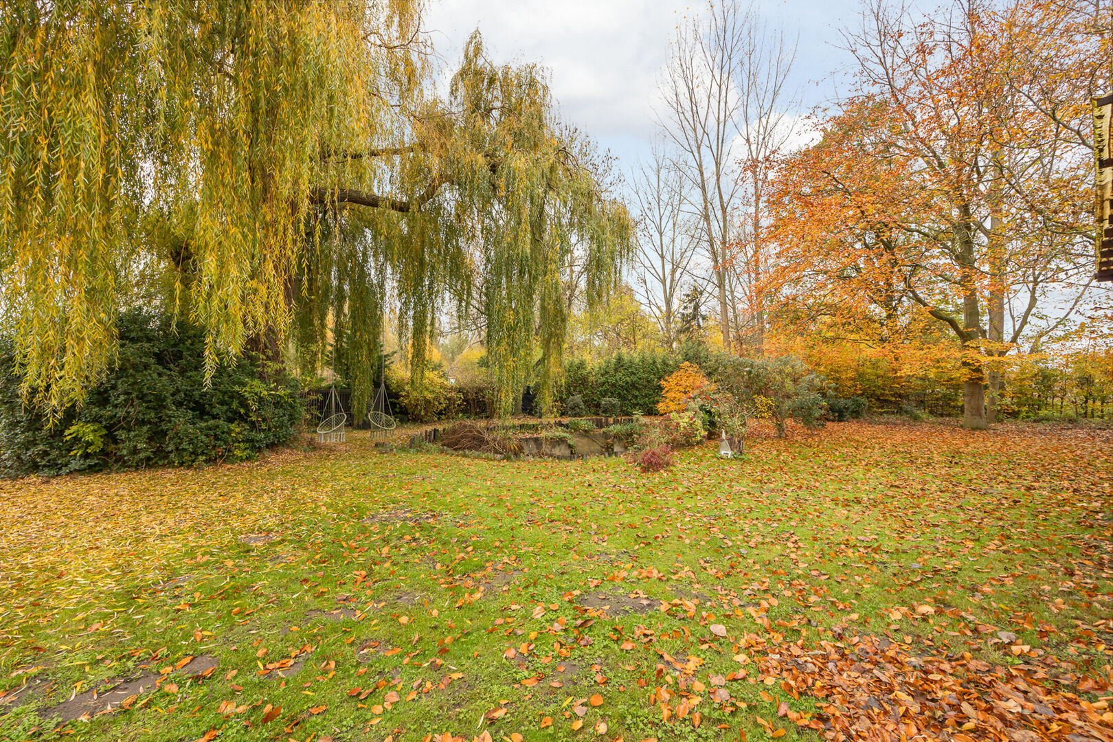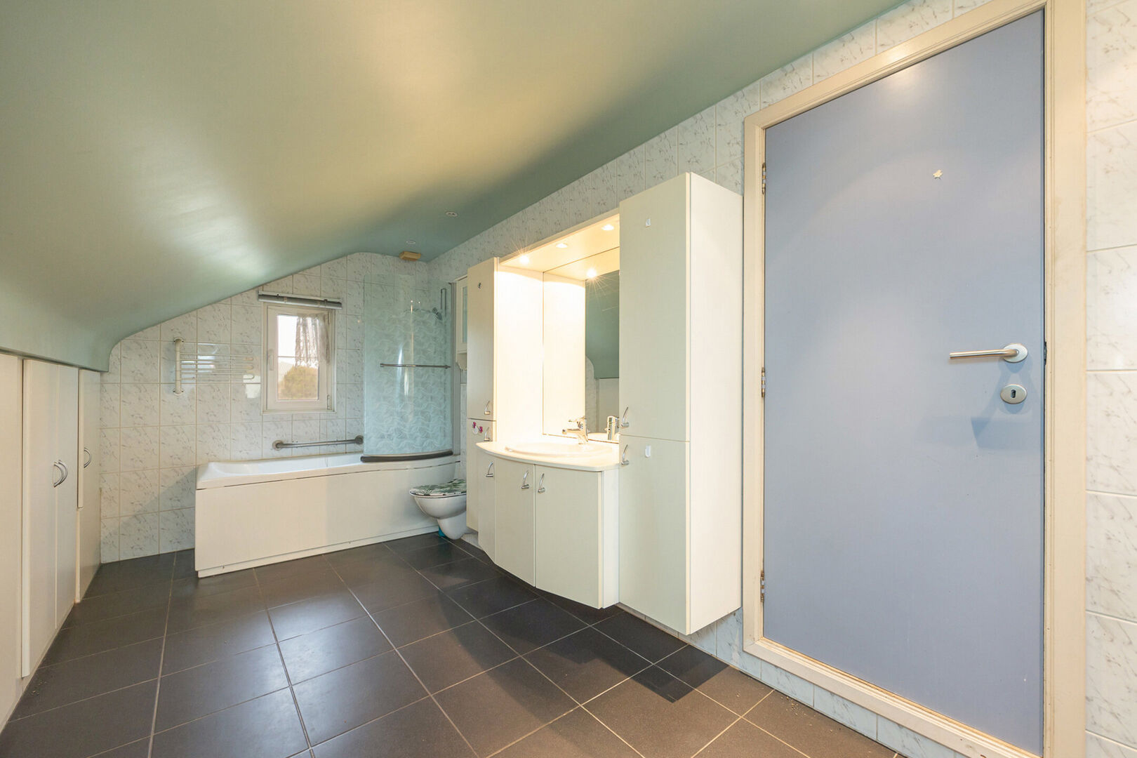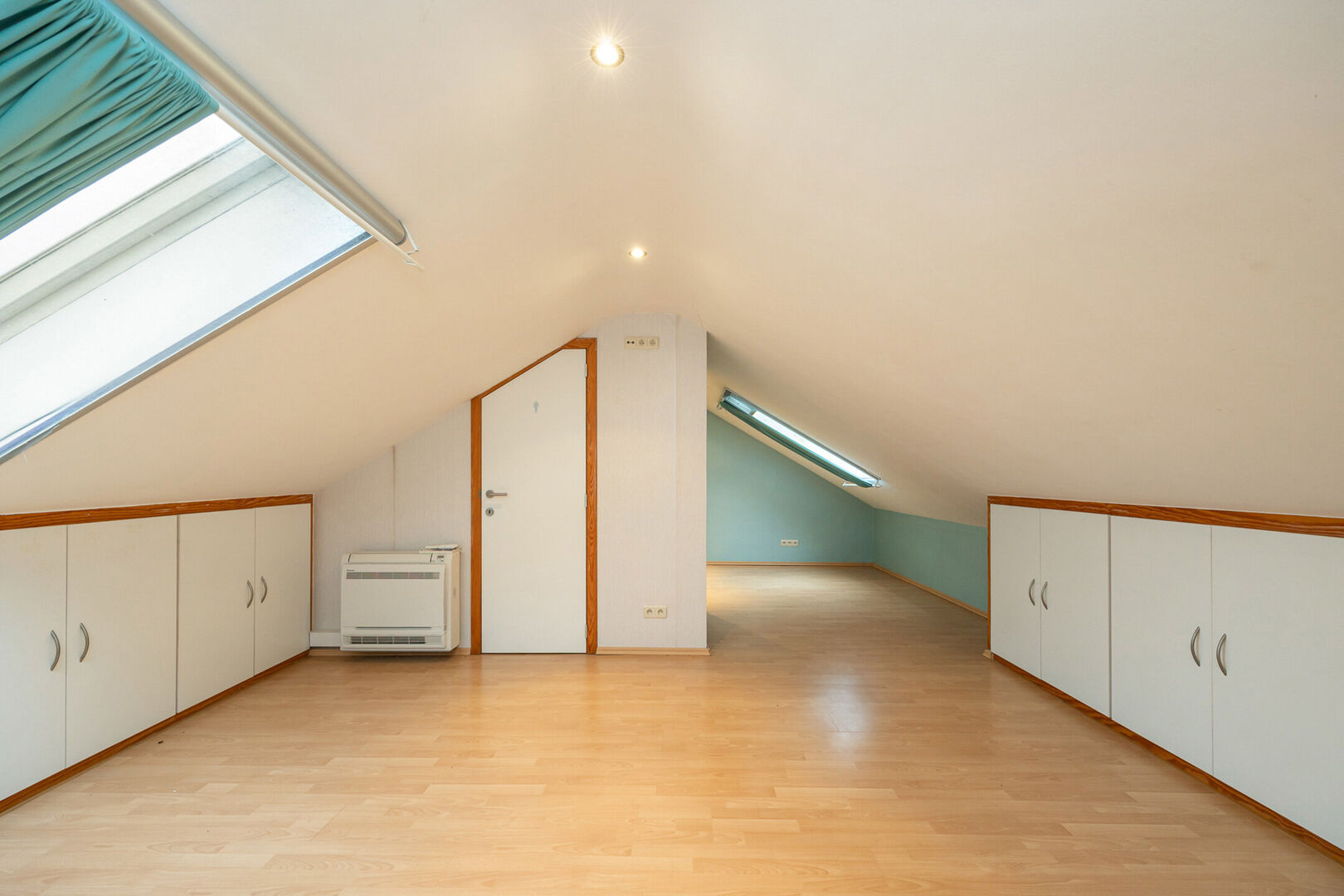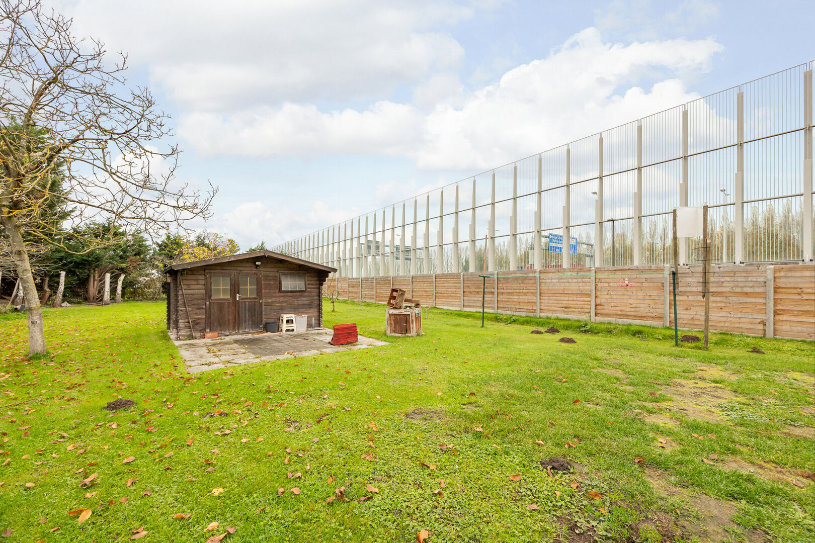 De zonnige tuin is een echte troef en beschikt over een ruim terras, een tuinhuis en een vijver. De tuin is rechtstreeks toegankelijk vanuit zowel de keuken als de veranda, wat zorgt voor een optimaal binnen-buitengevoel.Dankzij de geluidswanden langs de autostrade wordt omgevingsgeluid vrijwel volledig gedempt, waardoor je in en rond de woning heerlijk rustig kan vertoeven.