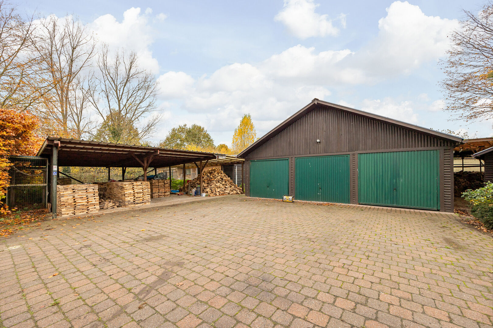 Op het perceel bevindt zich een apart bijgebouw met garage, voorzien van plaats voor drie wagens. Daarnaast zijn er drie carports, waarvan één extra hoog en ideaal voor het stallen van een mobilhome.