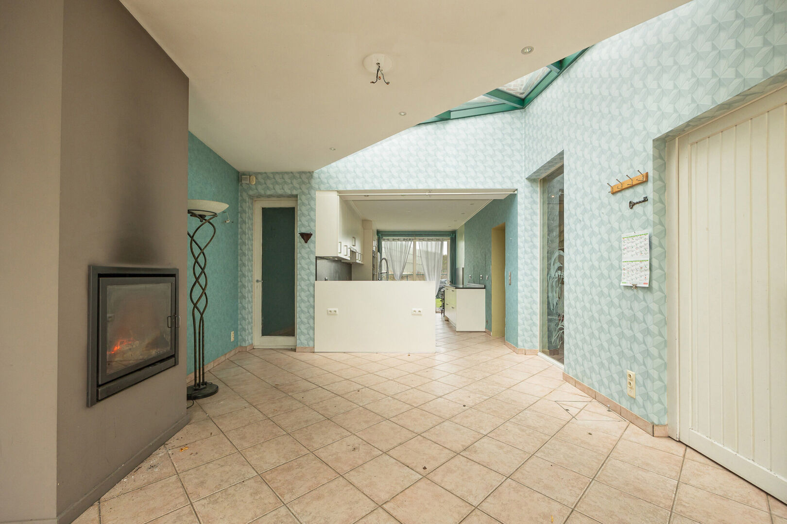 Via de uitnodigende inkomhal met gastentoilet hebben we toegang tot een bureauruimte of extra slaapkamer en een praktische berging. De uitgeruste keuken sluit mooi aan op de eetplaats en de gezellige veranda. Dankzij het grote schuifraam geniet je van een directe verbinding met de prachtige tuin en het zonneterras.