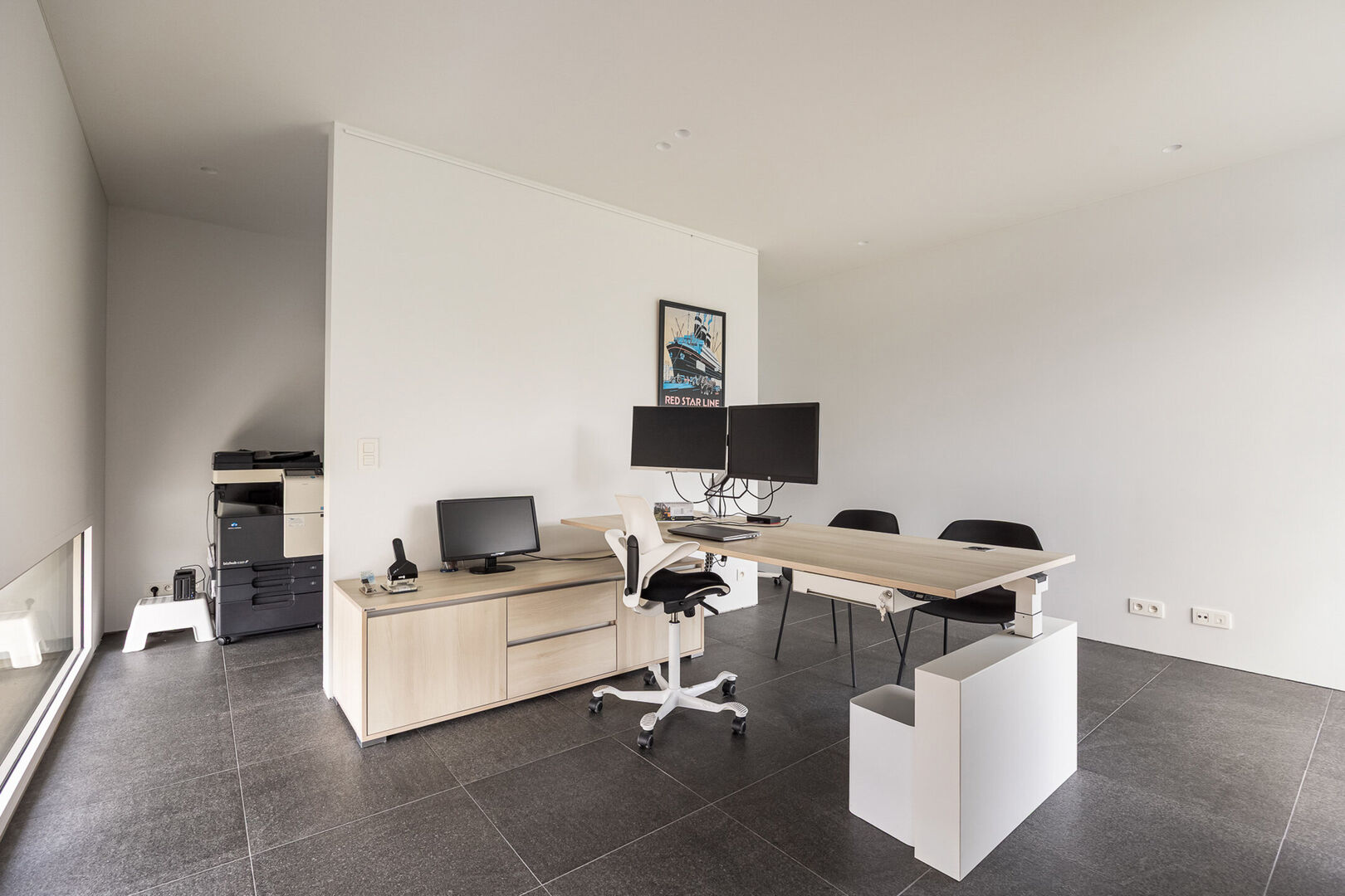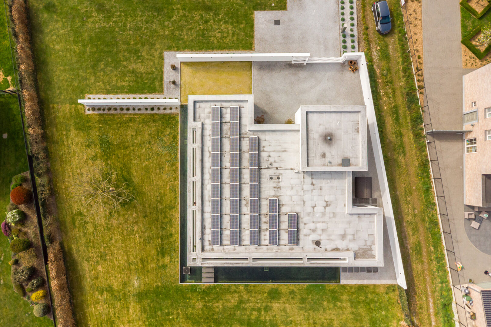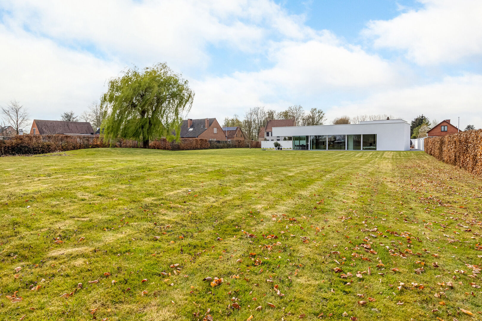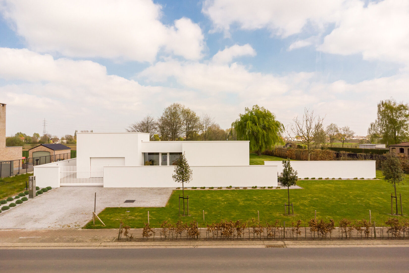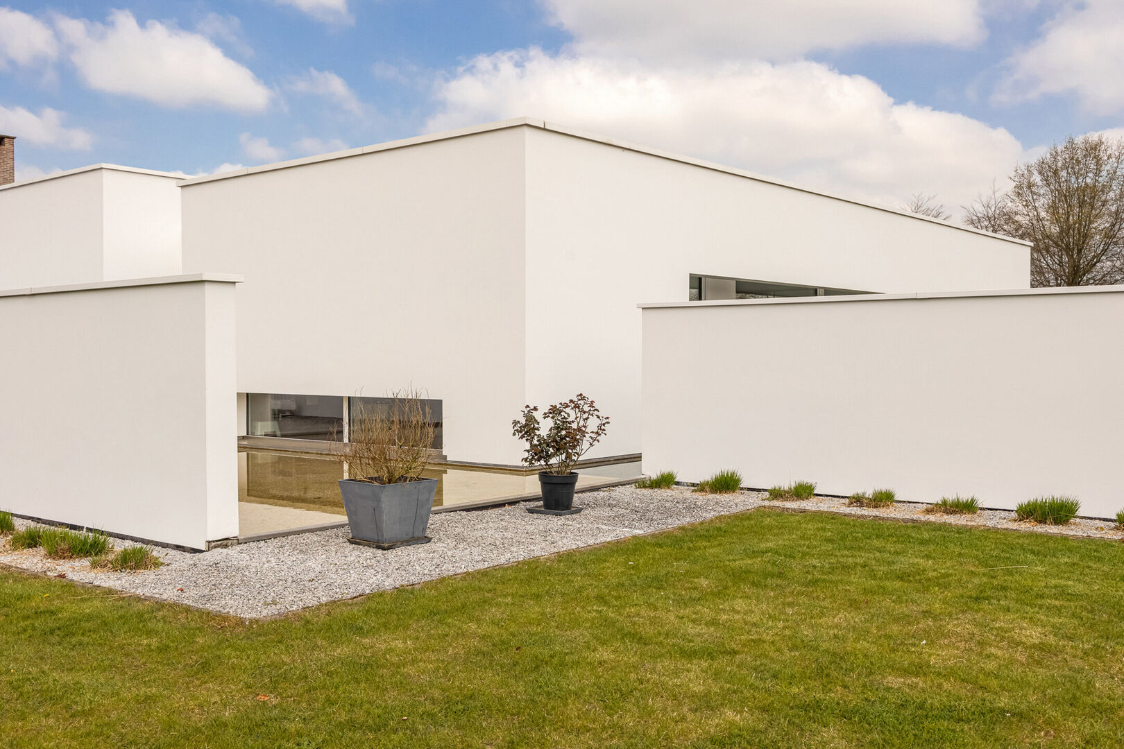 De woning is tot in de puntjes afgewerkt met oog voor detail: doorlopende terrasvloeren creëren een harmonieus lijnenspel van binnen naar buiten, alle ramen aan de zonnige zijde zijn voorzien van zowel binnen- als buitenscreens, en in elke ruimte is een discreet schilderij ophangsysteem geïntegreerd.