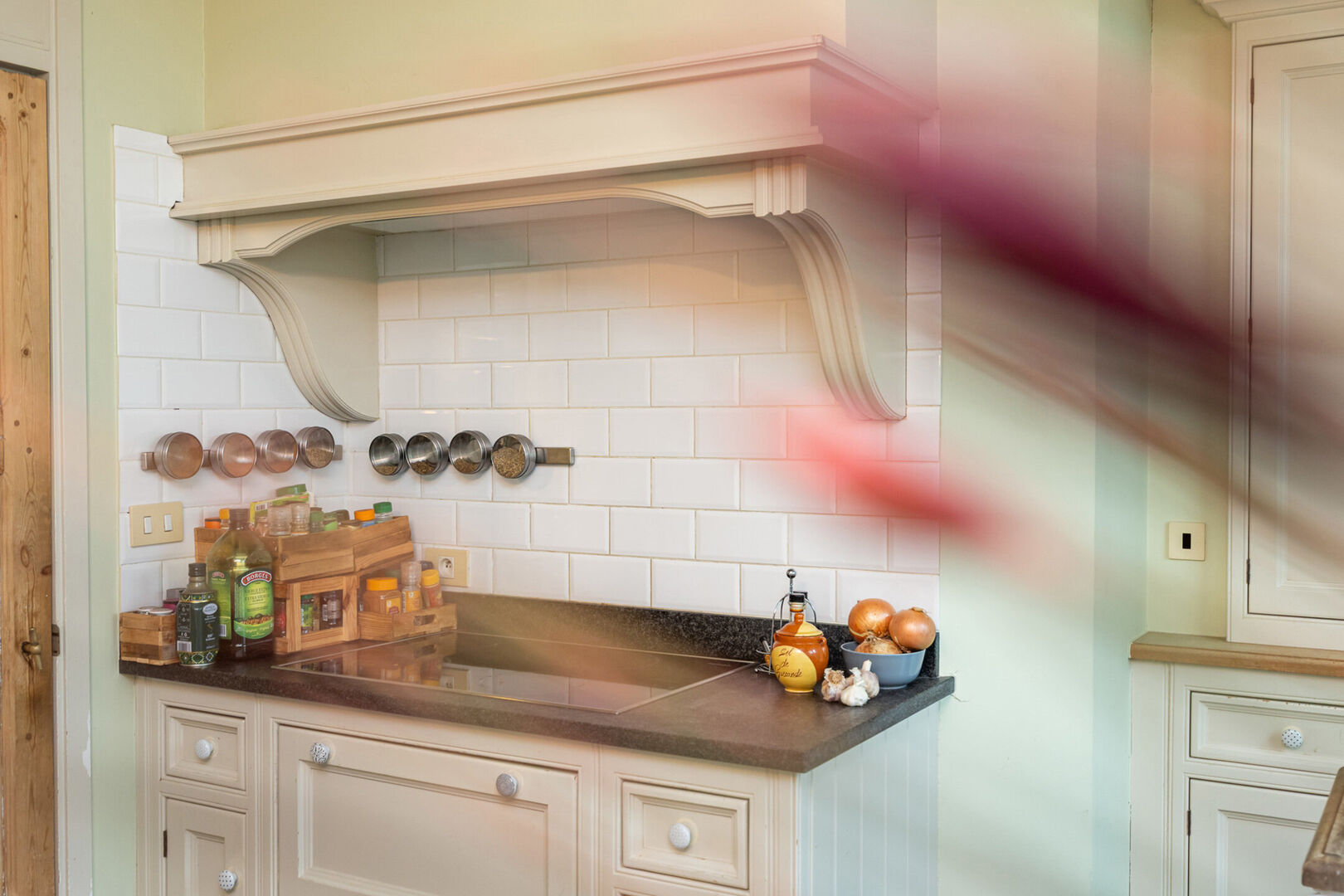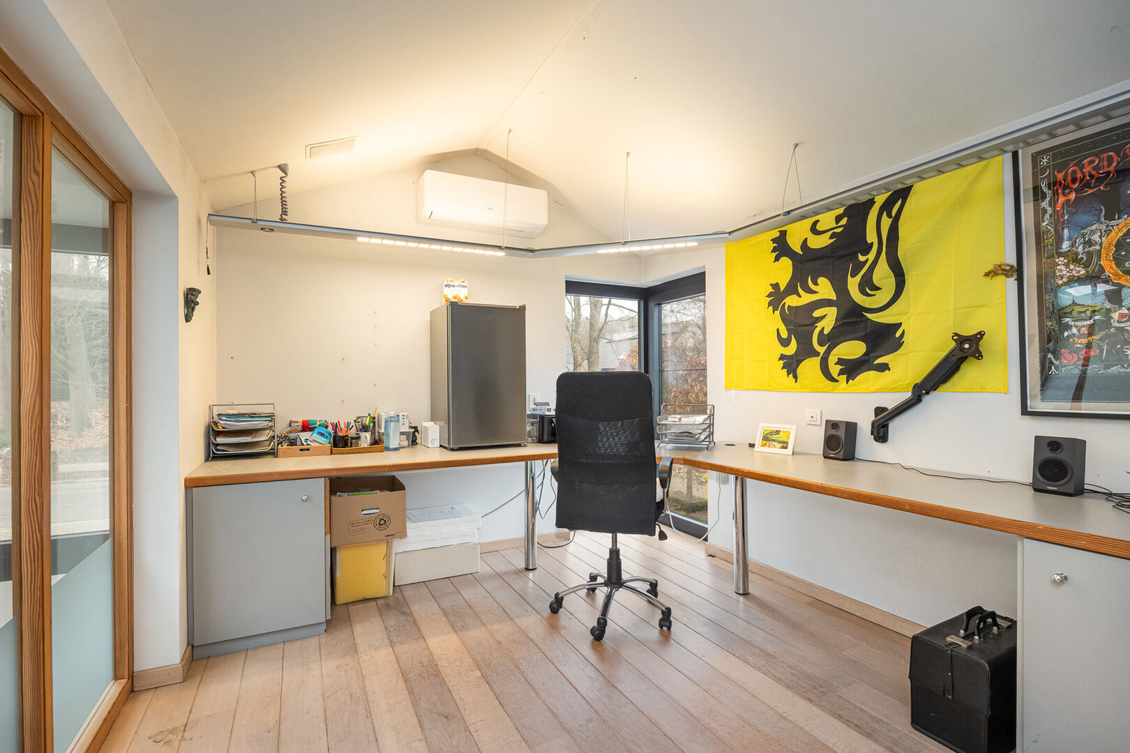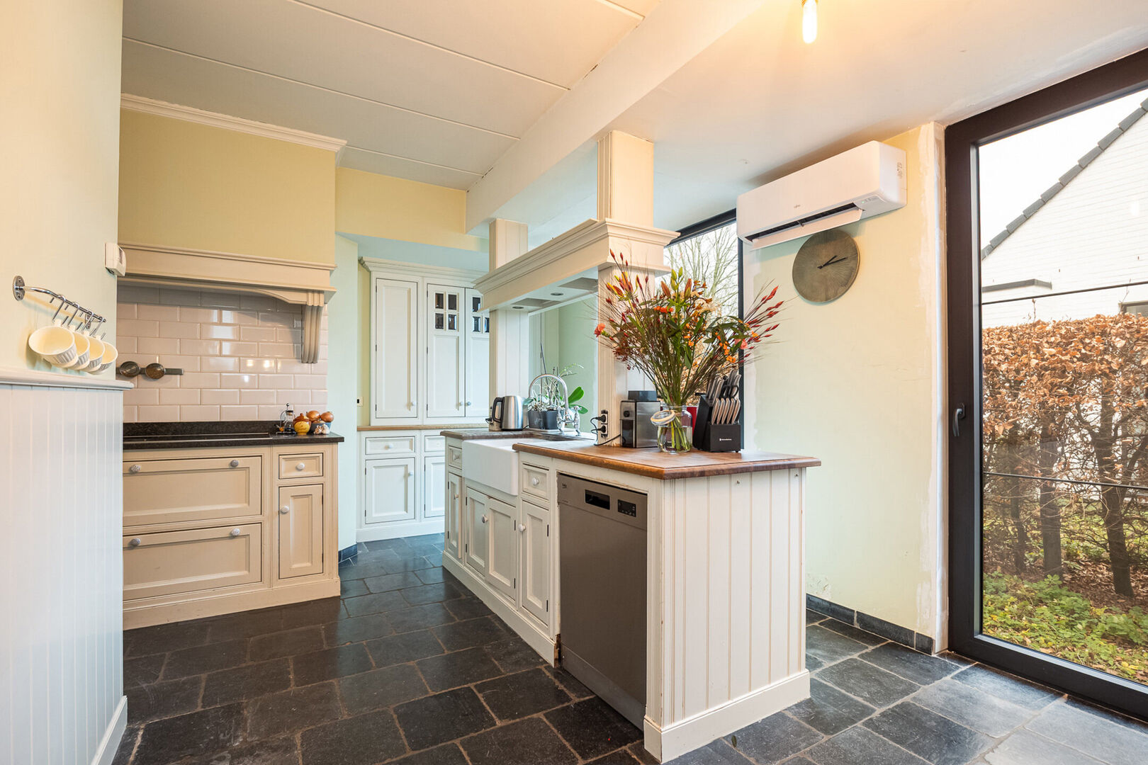 De keuken is goed uitgerust en beschikt over veel kastruimte en een centraal kookeiland, ideaal voor wie graag kookt en gasten ontvangt. Op het gelijkvloers bevindt zich bovendien nog een extra boekenkamer, perfect als cosy leesruimte.