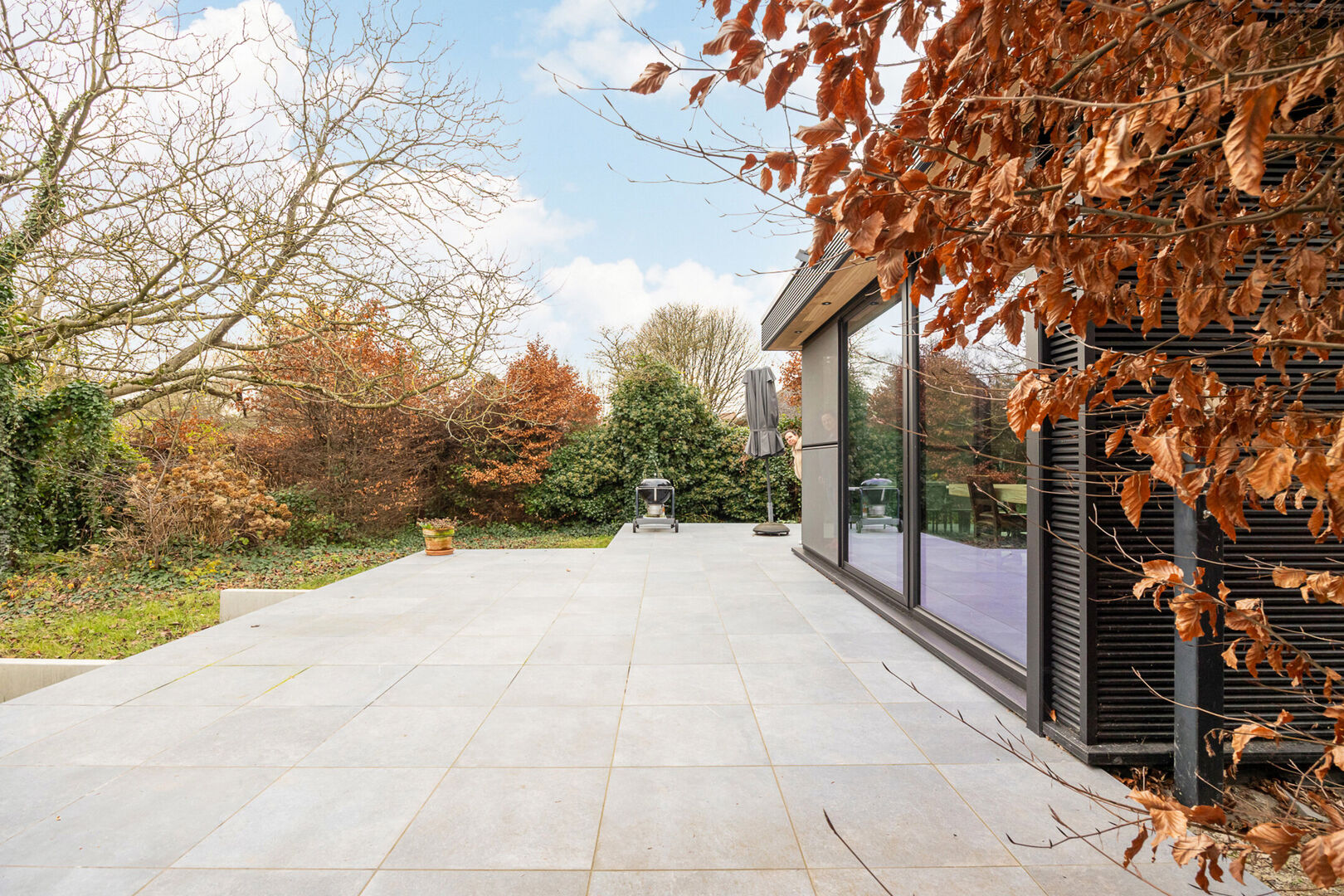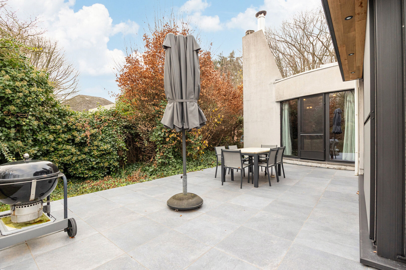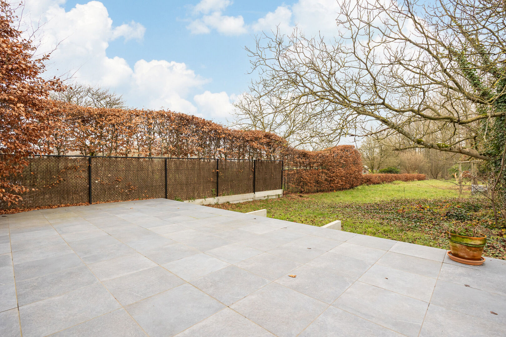 Buiten geniet u van een groot terras en een ruime tuin die grenst aan bosgebied, een absolute troef voor wie houdt van rust, privacy en natuur.
