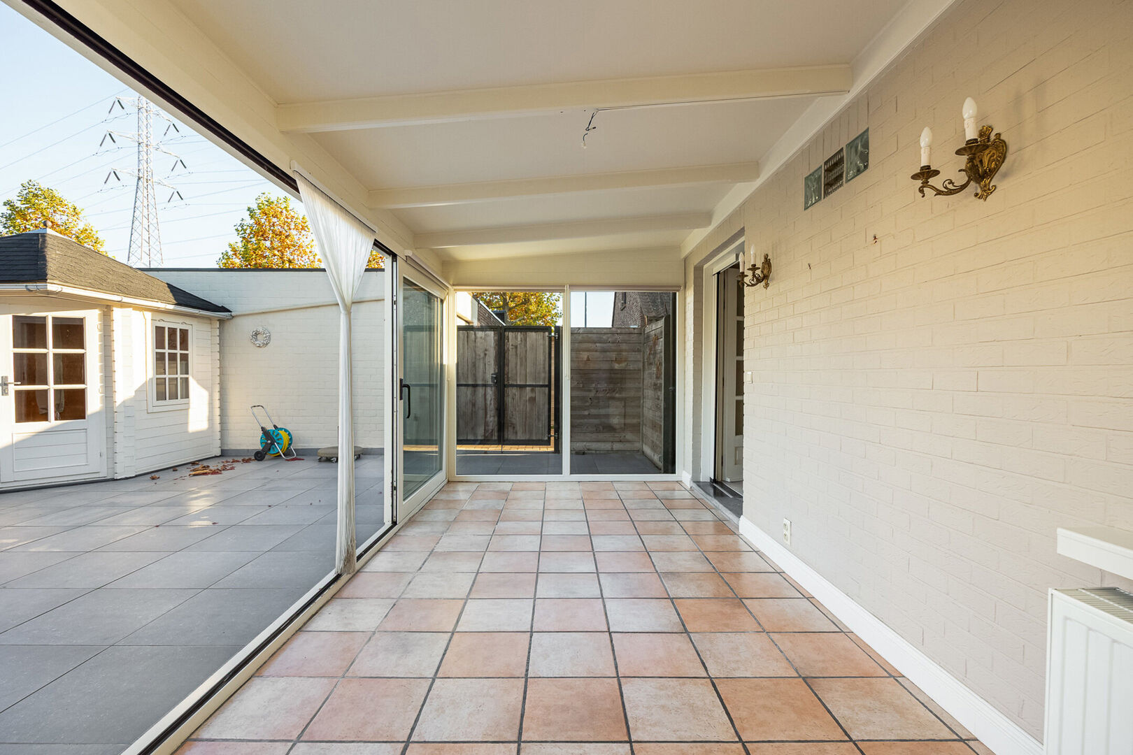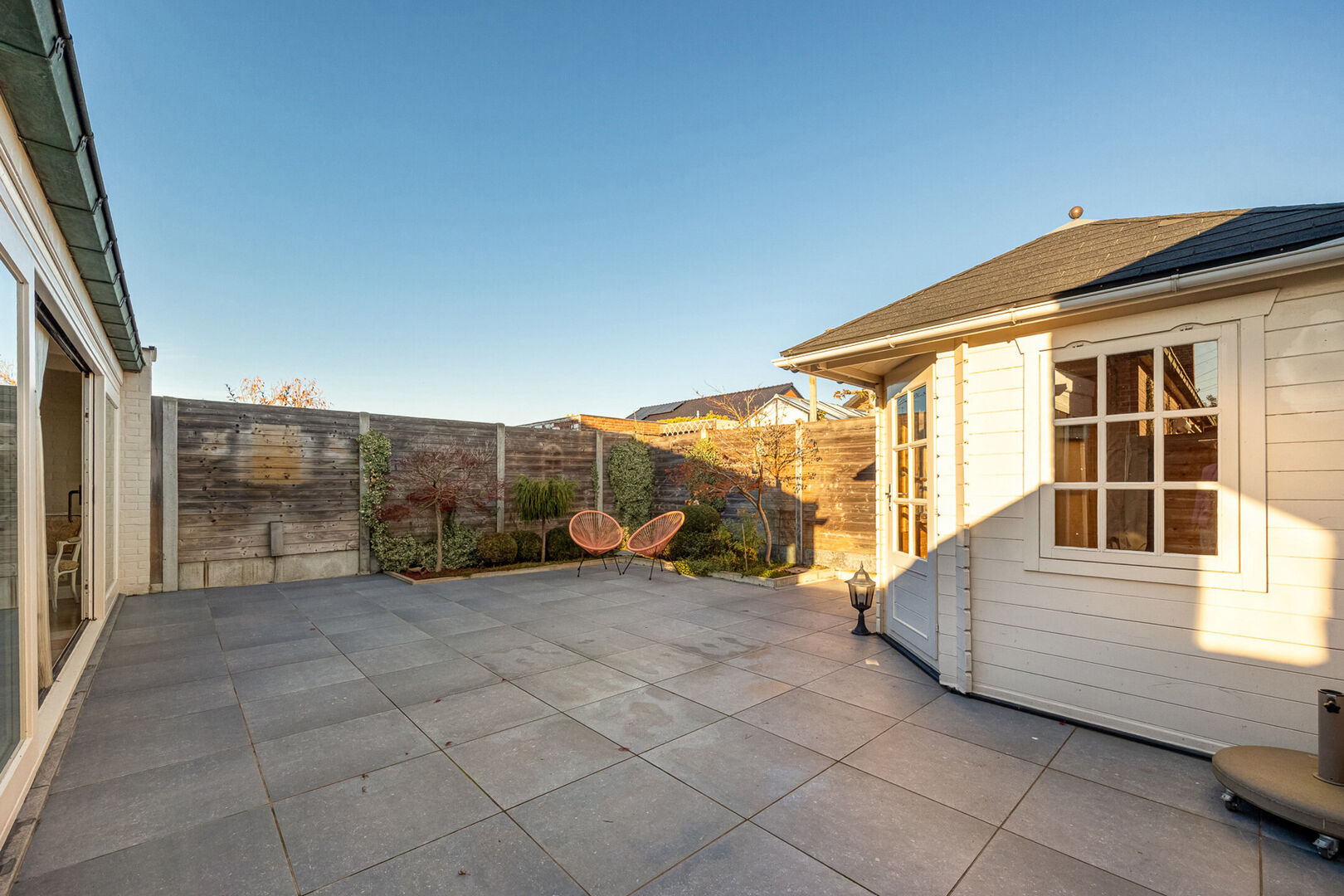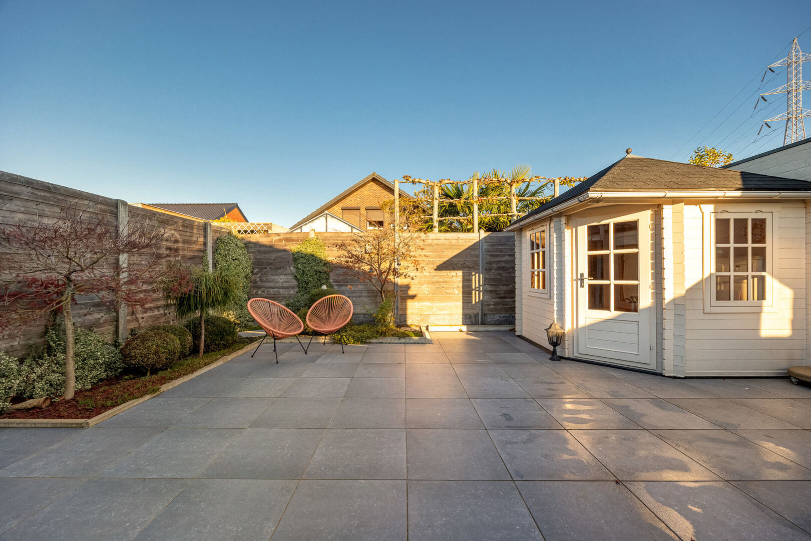 Verder zijn er twee volwaardige slaapkamers en een derde kamer die momenteel ingericht is als bureauruimte. Deze geeft via een dubbele deur uit op de zonnige veranda, waar dankzij twee grote schuiframen binnen en buiten naadloos in elkaar overlopen. Achter de veranda ligt een groot terras met tuinhuis, voor wie meer houdt van groen kan dit onthard worden en ingericht als een gezellig tuintje.