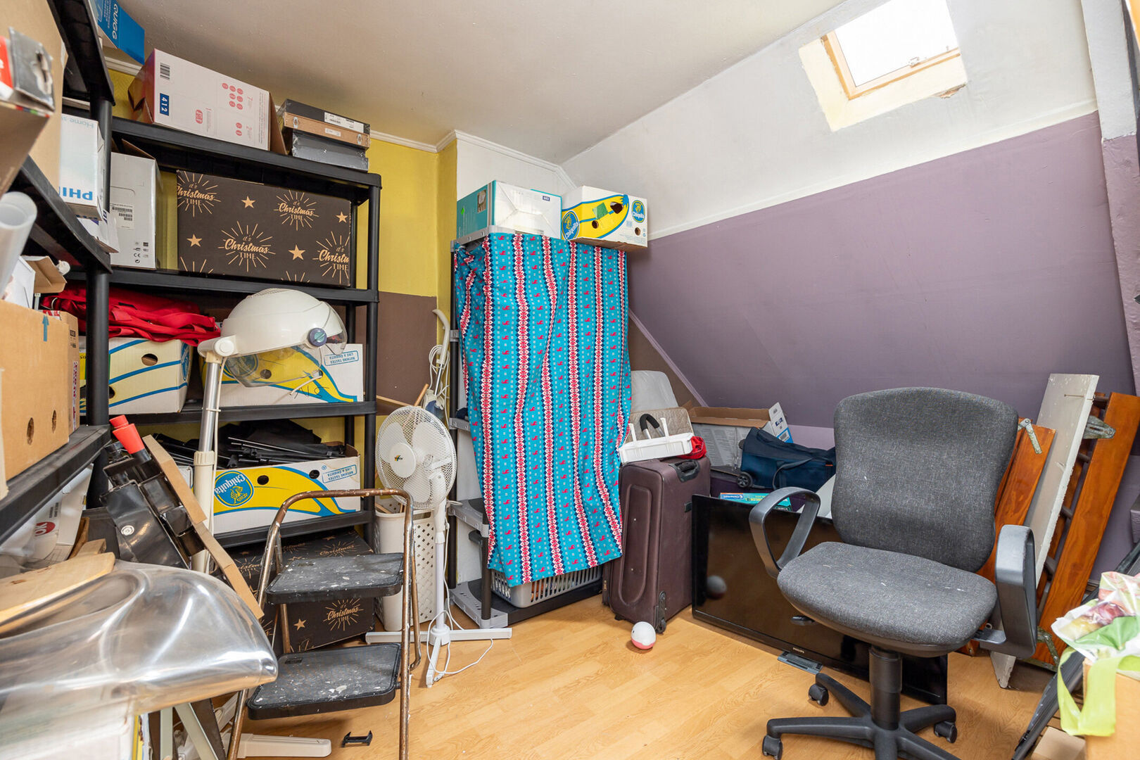Op de tussenverdieping bevindt zich een eerste slaapkamer. De eerste verdieping biedt nog eens twee ruime slaapkamers, en op de tweede verdieping ontdek je een extra kamer én een zolderruimte met tal van mogelijkheden.