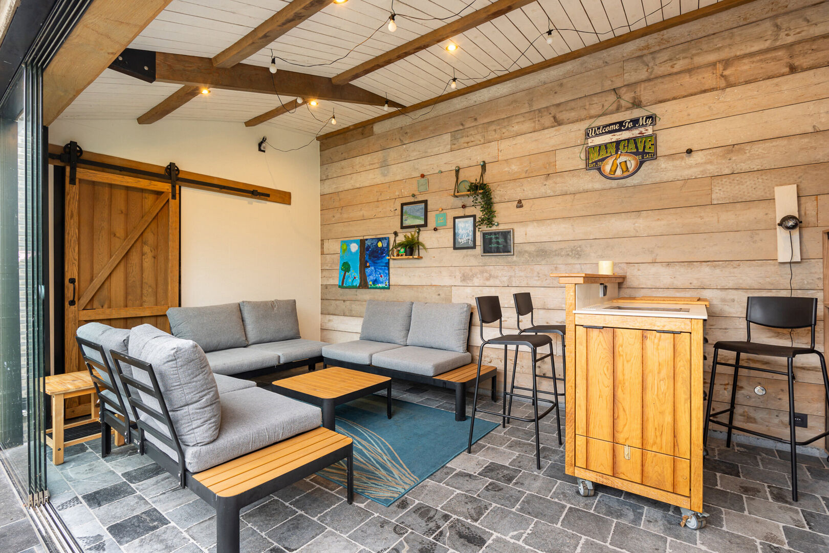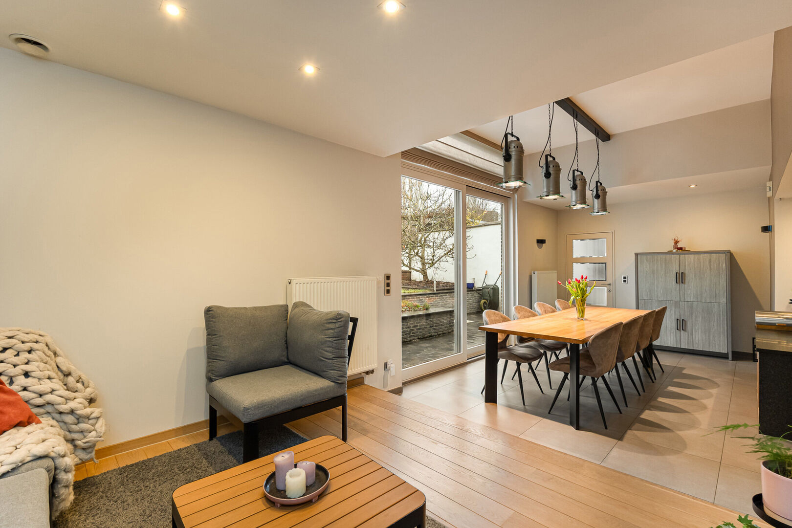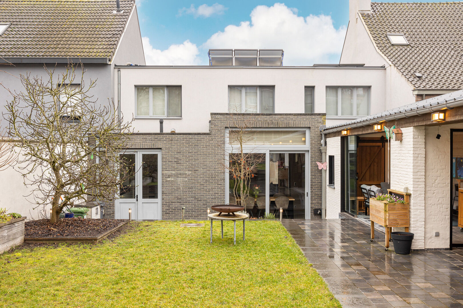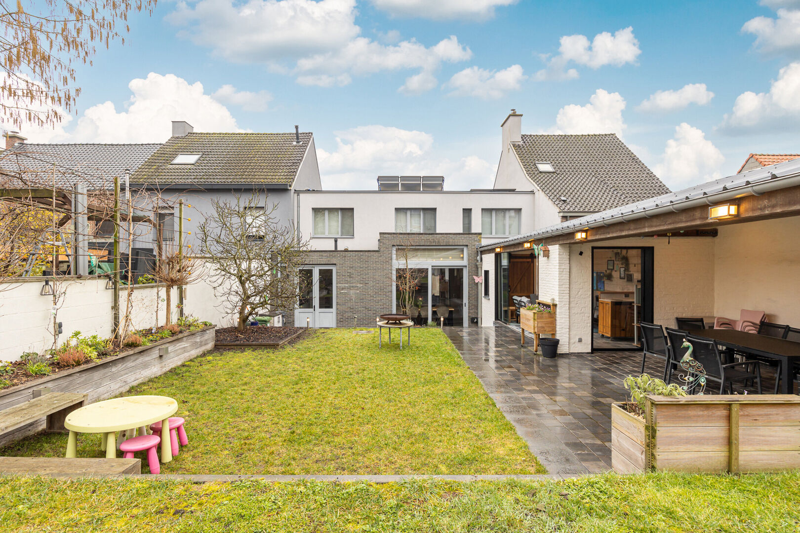 De tuin is volledig aangelegd en vormt een aangename buitenruimte. In het bijgebouw kan je het hele jaar door genieten van het buitenleven, ongeacht de weersomstandigheden.
