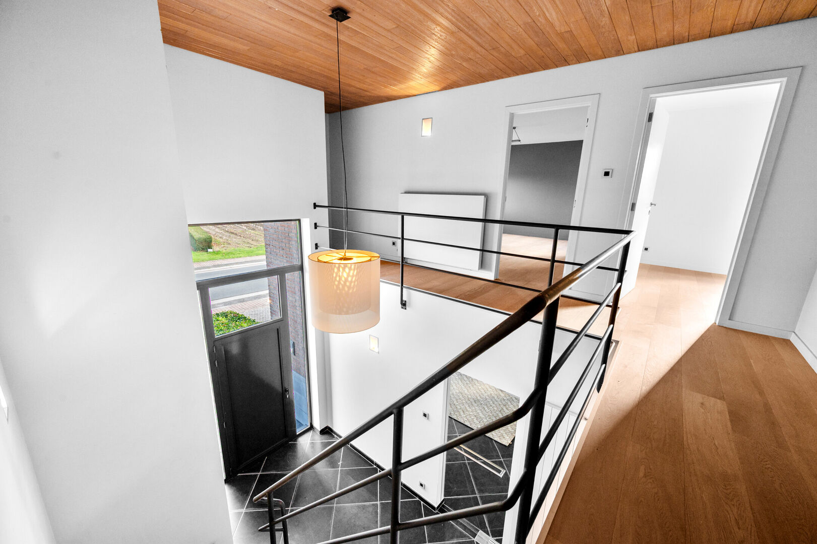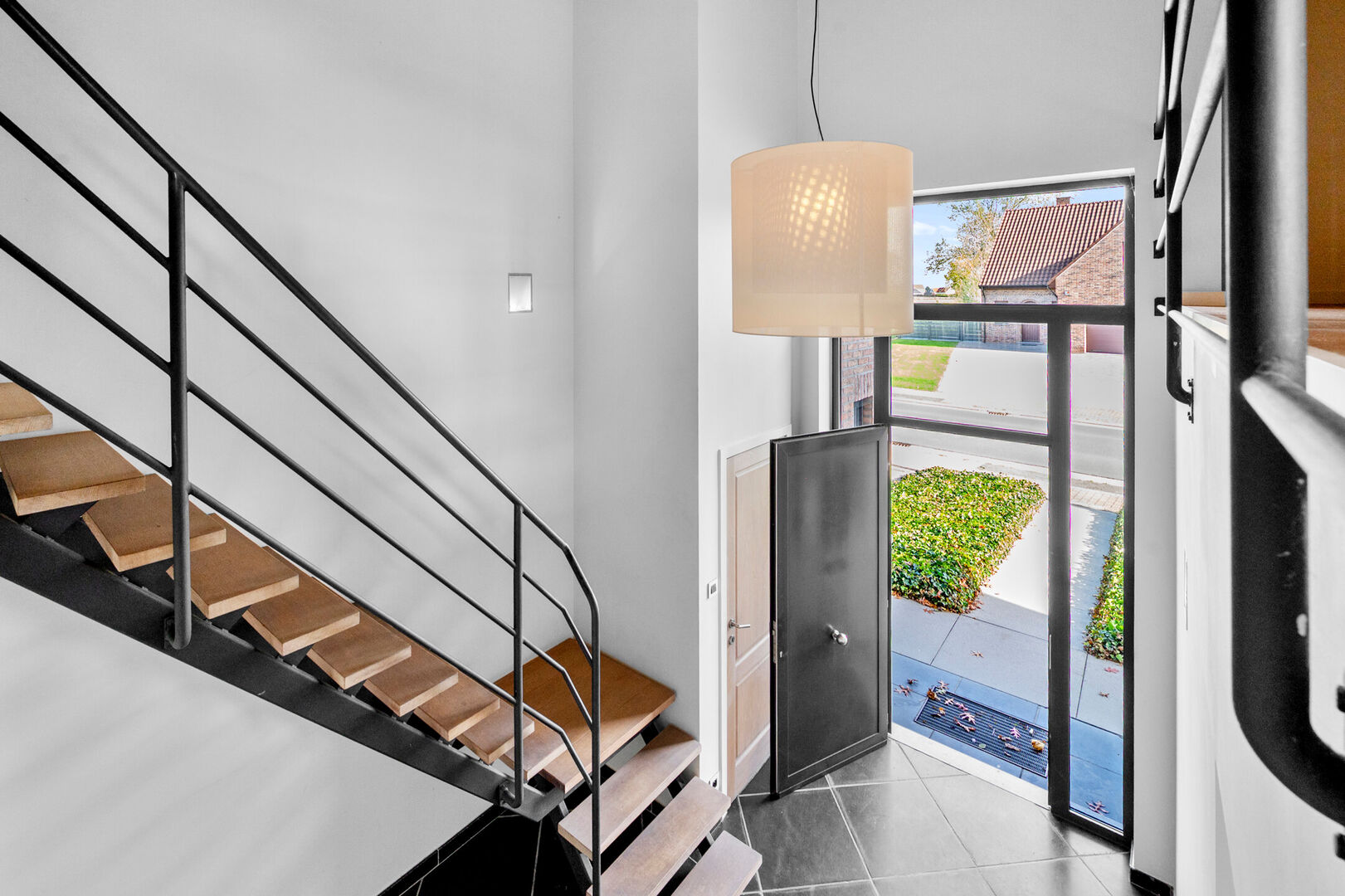 Bij binnenkomst via de centrale inkomhal - met gastentoilet - word je meteen ondergedompeld in licht en grandeur. De leefruimtes zijn ruim en open, met uitzicht rondom – aan de voorzijde op de velden, achteraan op de verzorgde tuin.
