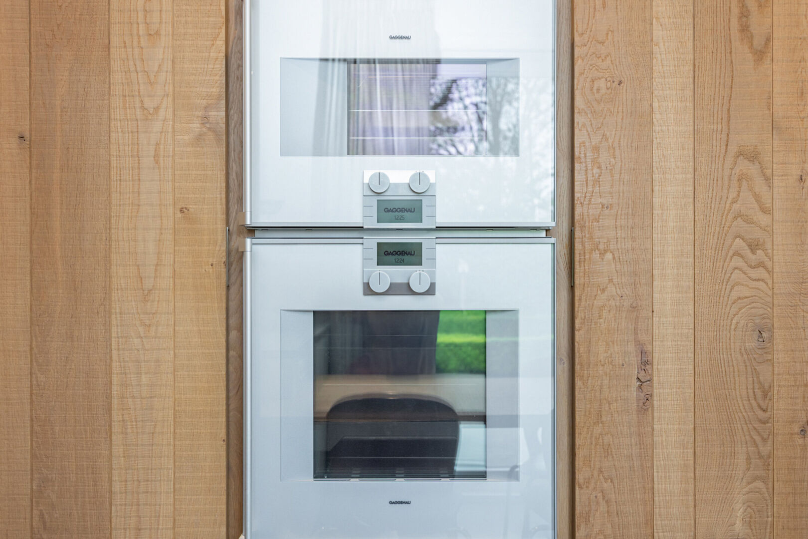 De luxueuze keuken is een waar paradijs voor de culinaire liefhebber. Het strakke composiet keukenblad geeft de ruimte een moderne uitstraling, terwijl de toestellen van Gaggenau garant staan voor topkwaliteit. De keuken beschikt tevens over een gezellige eettafel en biedt toegang tot een 1e terras.