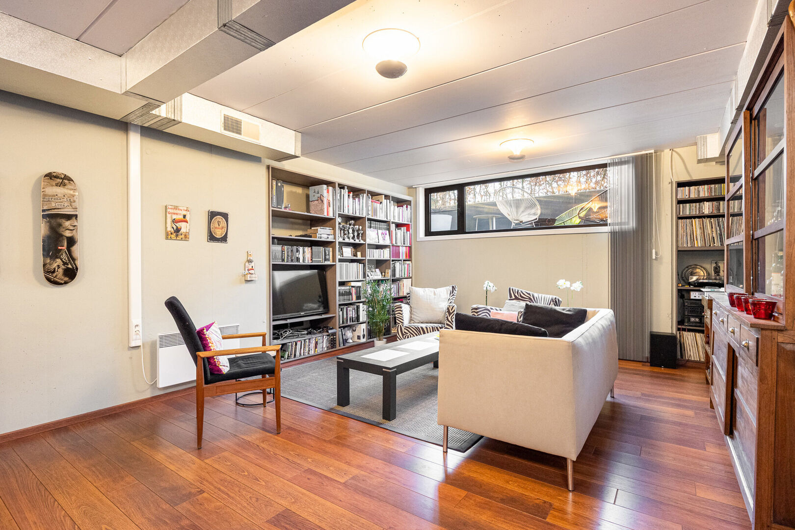 De woning is volledig onderkelderd, ook daar is verluchting, verwarming en daglicht dankzij de slimme architectuur.