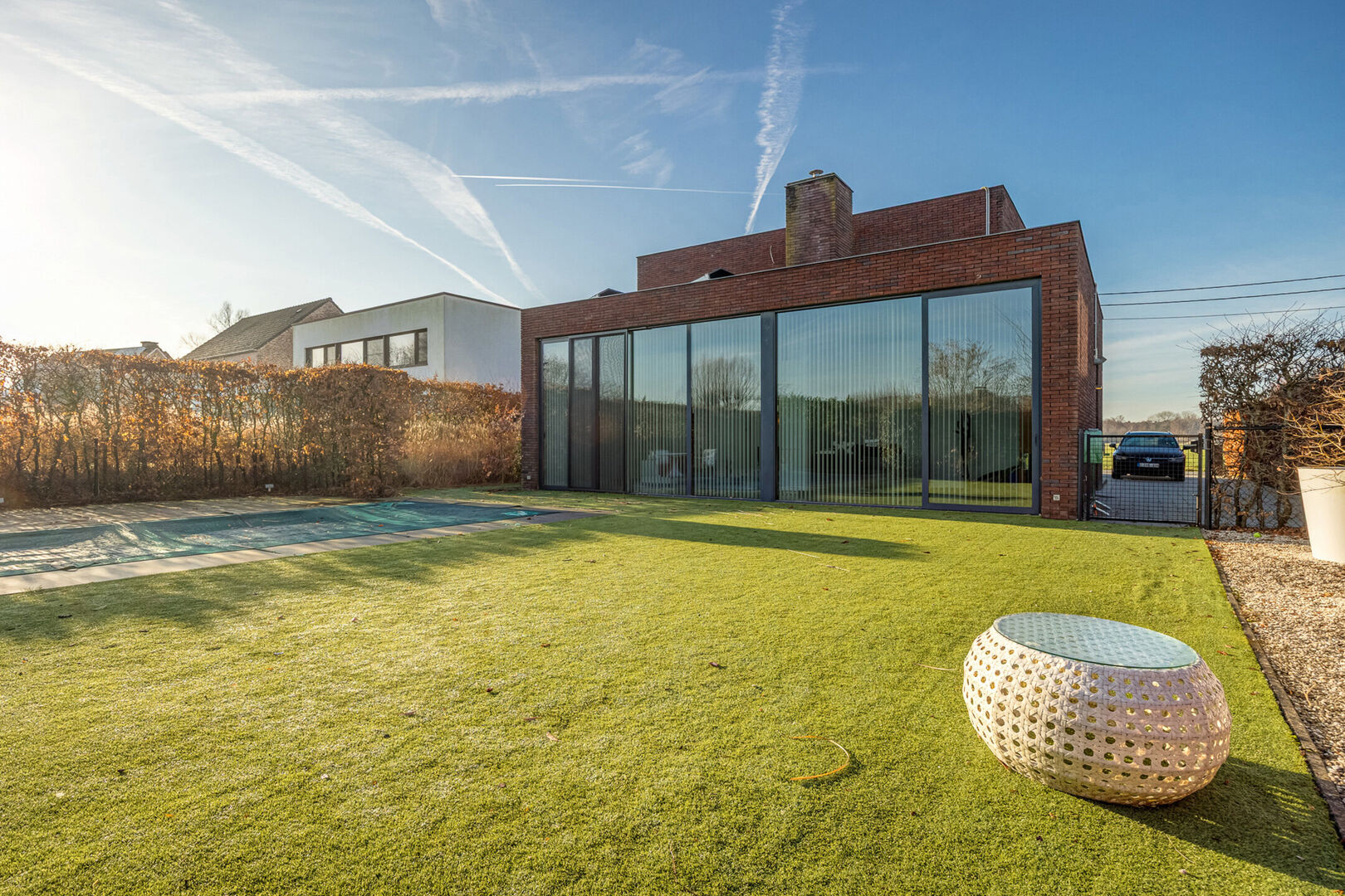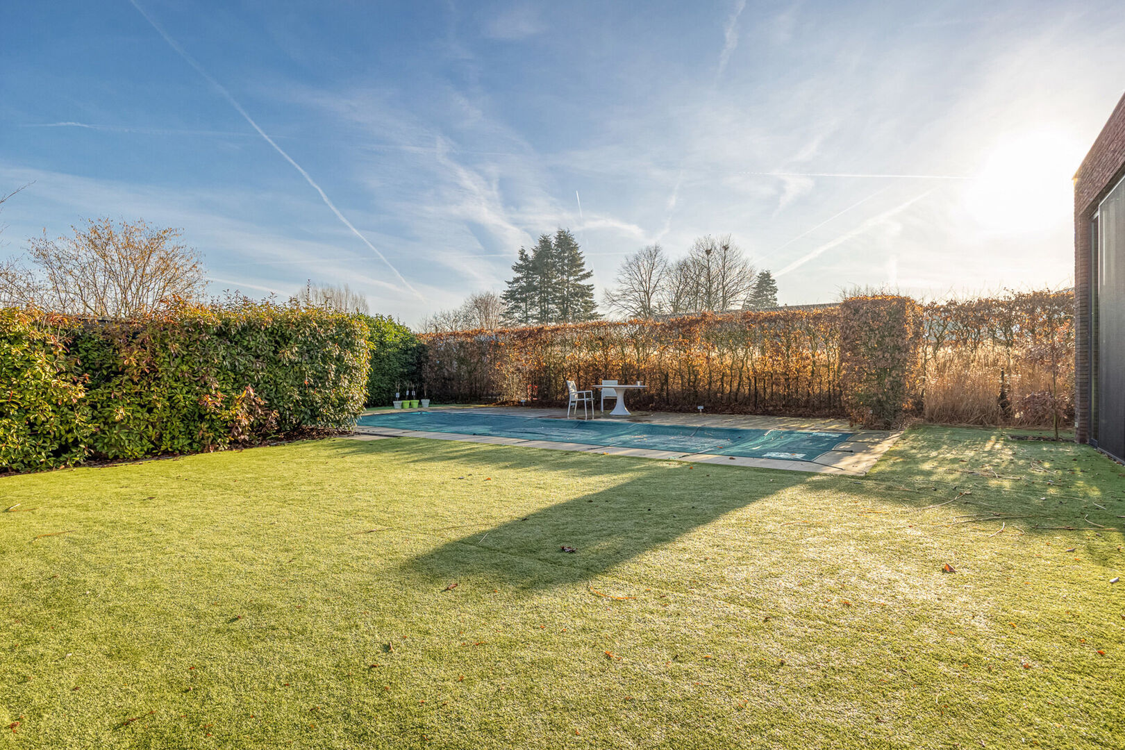 De tuin tenslotte omgeeft de hele woning. Er zijn op 2 plaatsen terrassen voorzien en het zwembad zorgt voor zomers waterplezier.