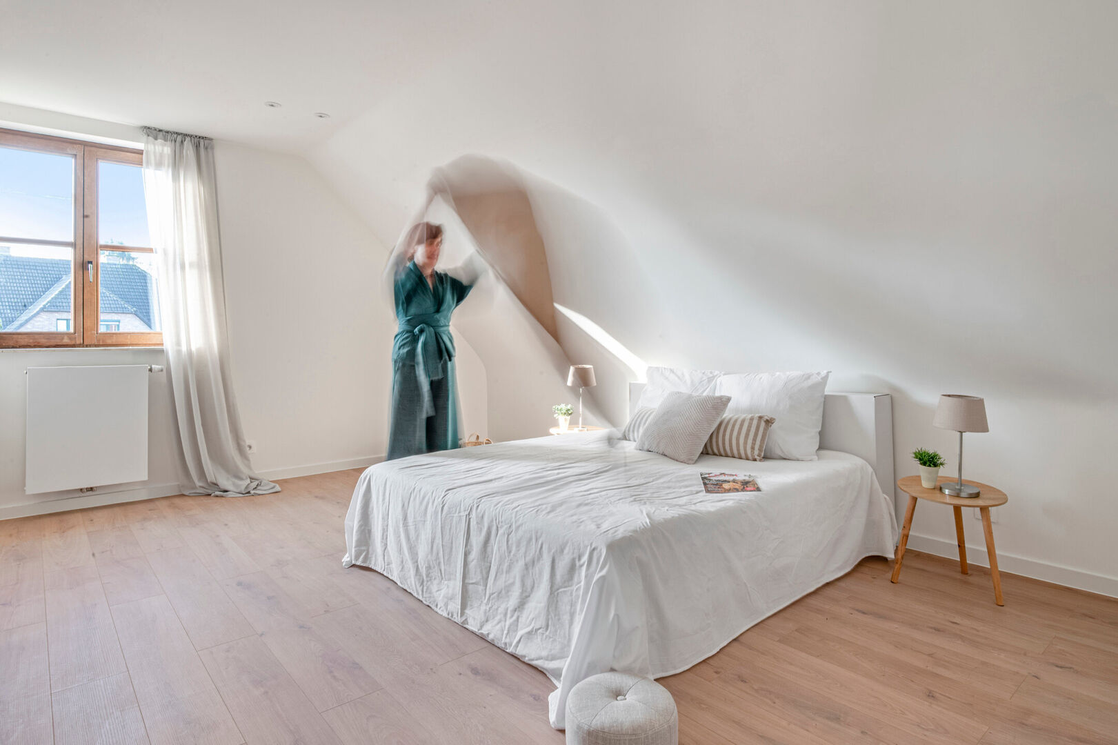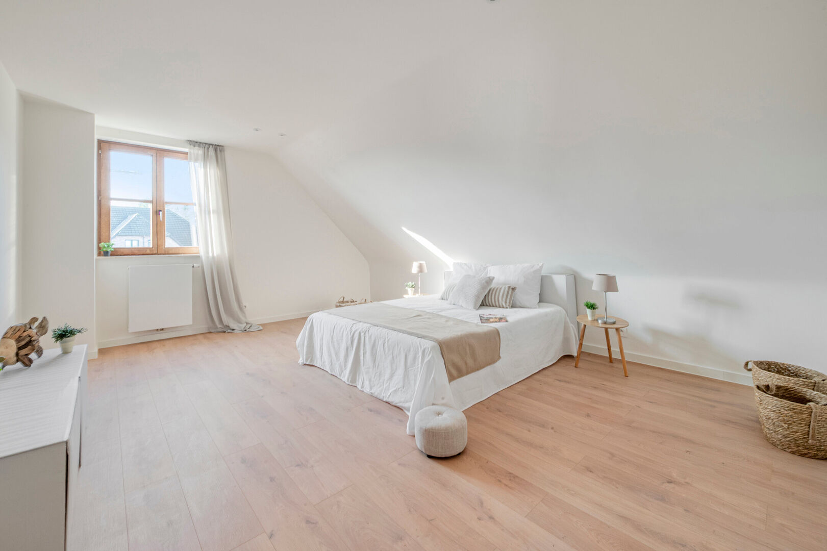 Daar bevinden zich 4 slaapkamers waarvan er 3 bijzonder ruim zijn.